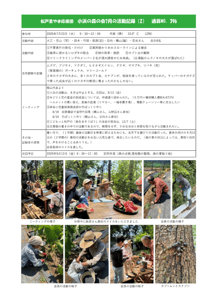 小浜屋敷の森 活動記録No.396(’25/7/27)