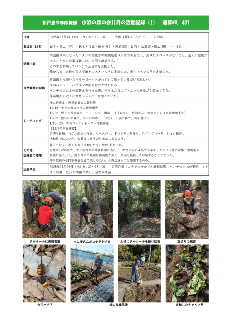 小浜屋敷の森 活動記録No.401(’25/11/14)
