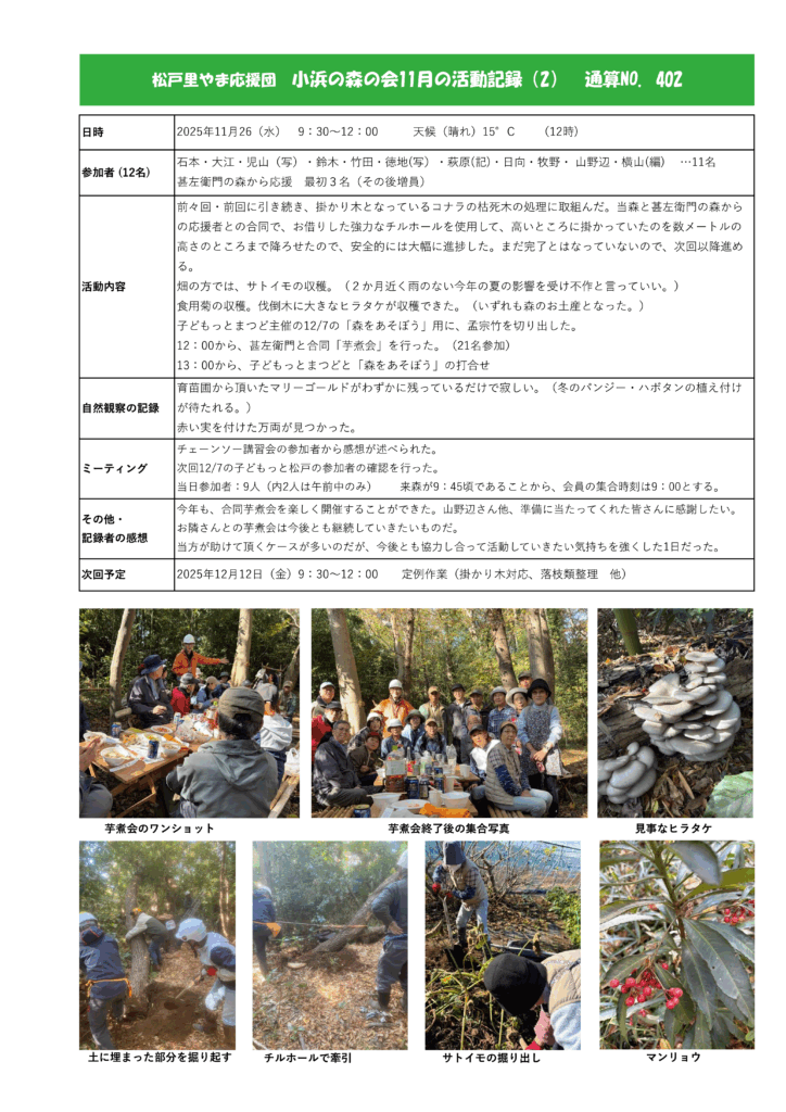 小浜屋敷の森 活動記録No.402(’25/11/26)